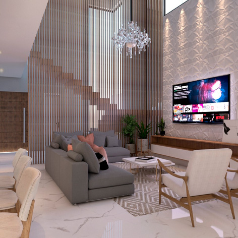 Arquitetura, Decoração de Interiores e Gerenciamento de Obras. São projetos residenciais, comerciais e públicos.